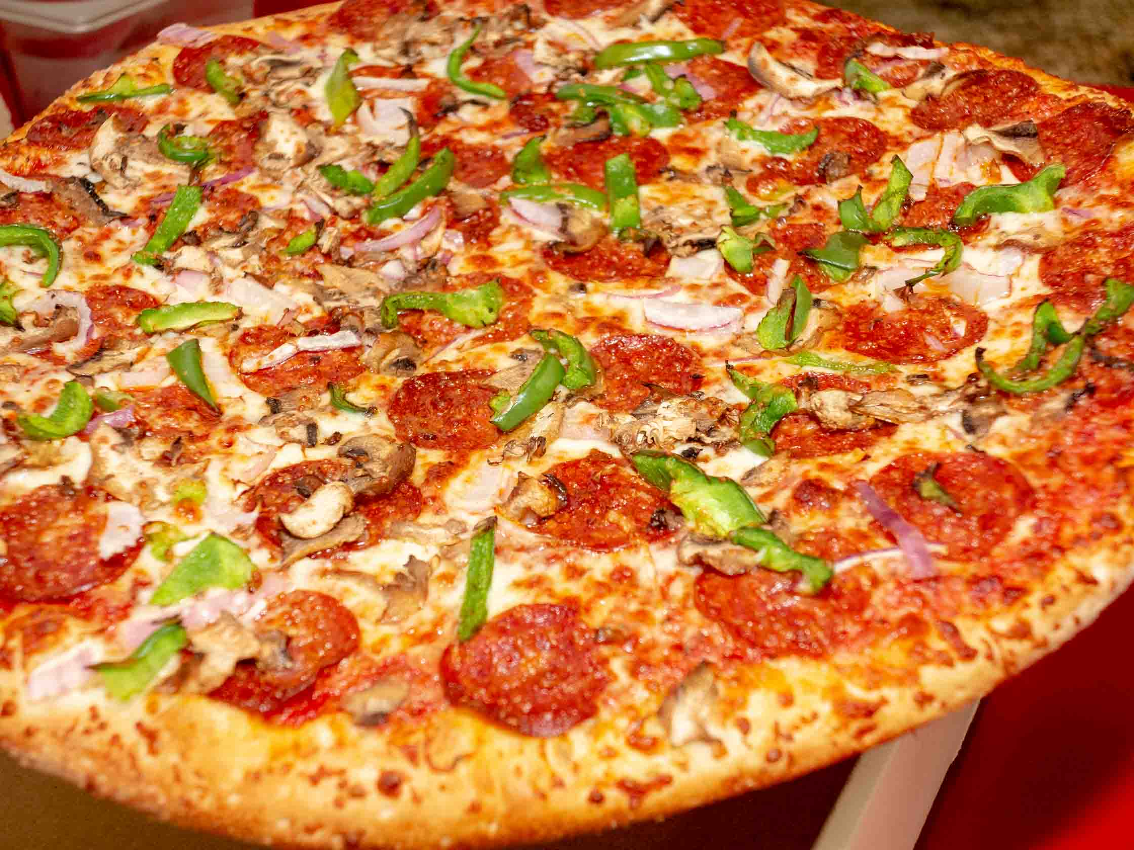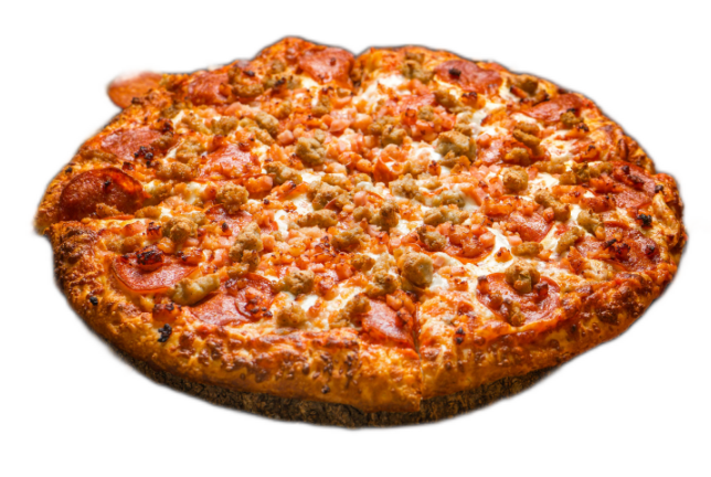 House Blend Marinara, Mozzarella, Pepperoni, Bacon, Ham, Italian Sausage and Ground Beef